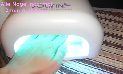 UV-Nagellack auftragen und 2 Minuten unter der UV-Lampe aushärten